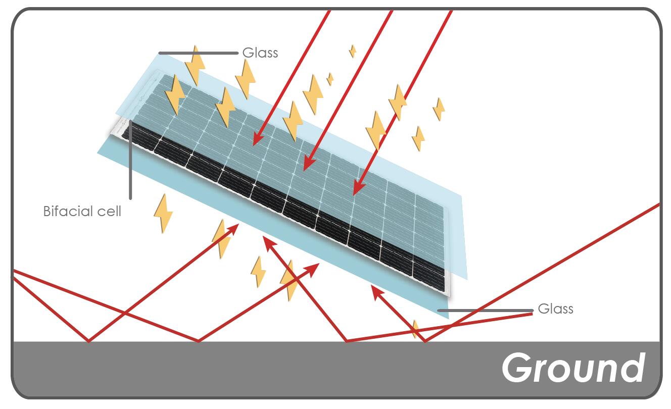 Результаты и исследования показали, что двусторонние модули могут производить дополнительную мощность на 10–20% по сравнению с монолицевыми панелями. Если условия оптимизированы и используются одноосные трекеры, дополнительная мощность может достигать 30-40%.